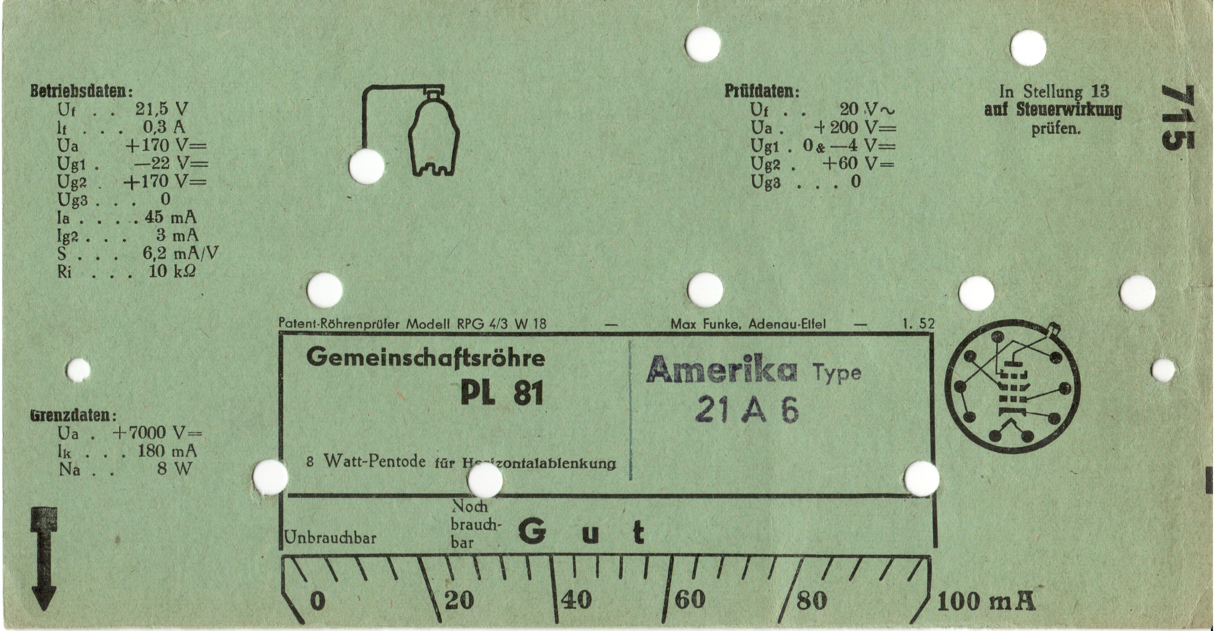 PL 81 | 715 | #1: Funke-Prüfkartenverzeichnis vom 1.3.57 | Europa-Röhrentypen | |