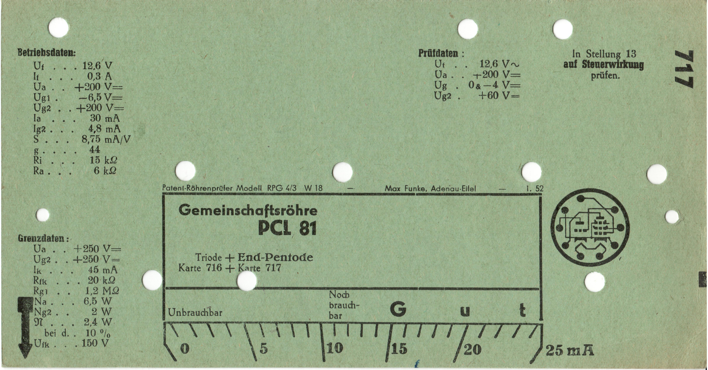 PCL 81 | 716 + 717 | #1: Funke-Prüfkartenverzeichnis vom 1.3.57 | Europa-Röhrentypen |