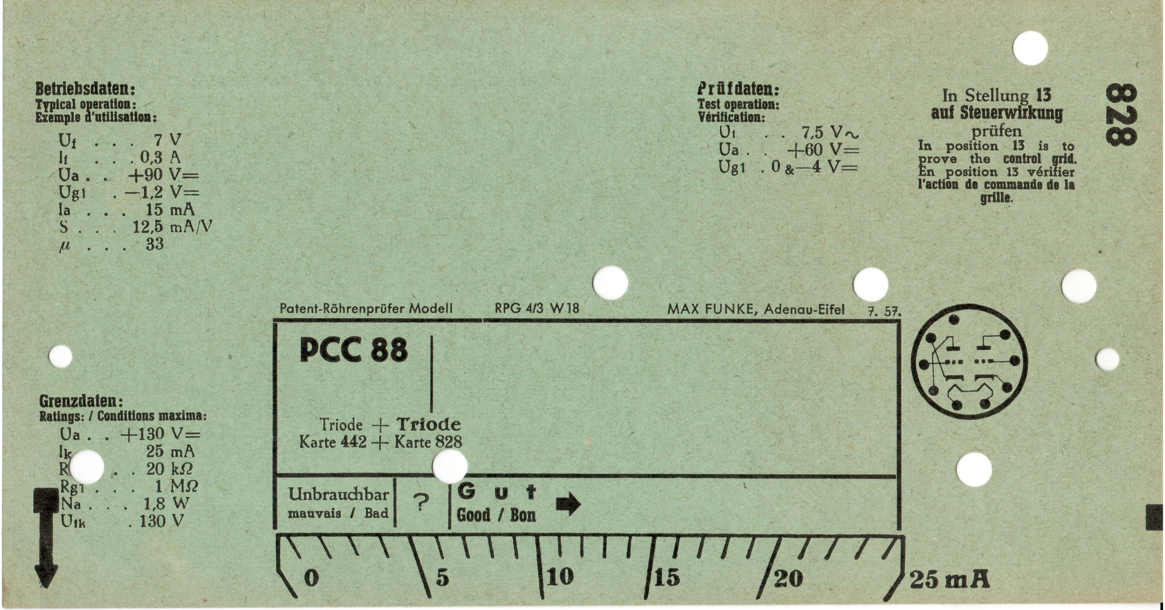 7 D 78 | 442 + 828 | #6: Röhren- und Prüfkarten-Verzeichnis zum Patent-Röhrenmeßgerät „Blaues Buch“ | Brimar |