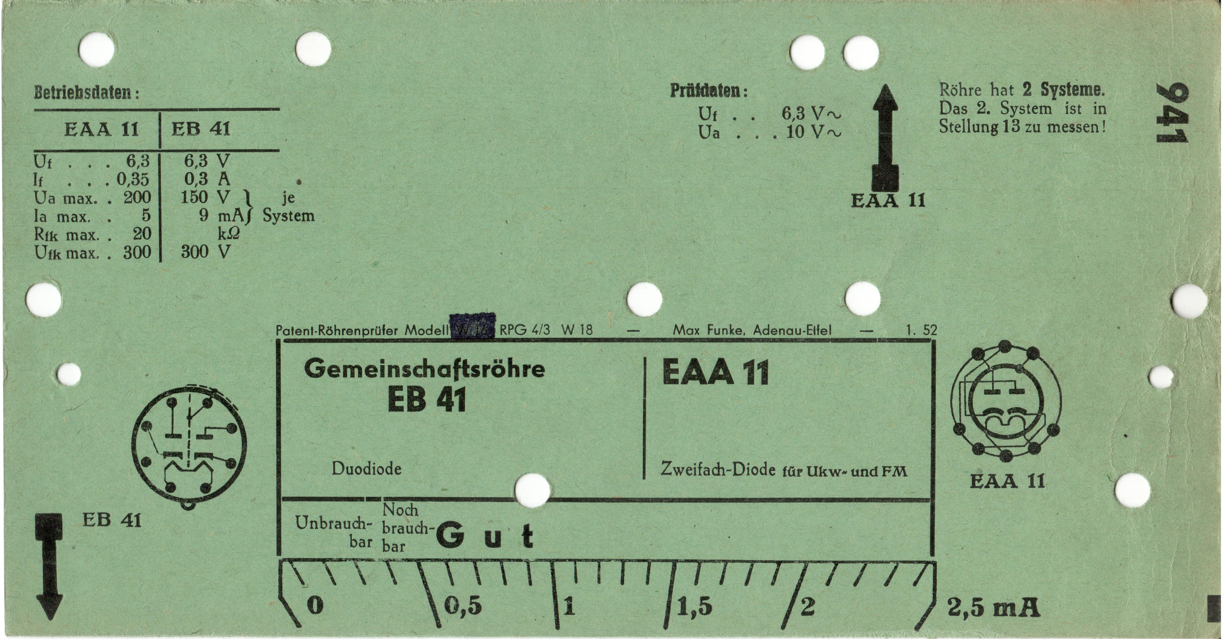 EAA 11 | 941 | #1: Funke-Prüfkartenverzeichnis vom 1.3.57 | Europa-Röhrentypen | |