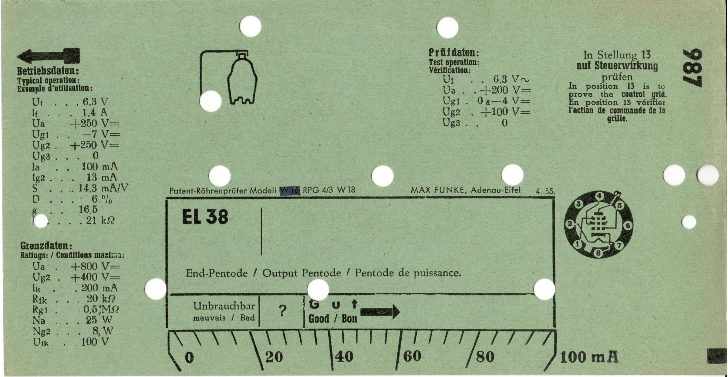 EL 38 | 987 | #1: Funke-Prüfkartenverzeichnis vom 1.3.57 | Europa-Röhrentypen | |