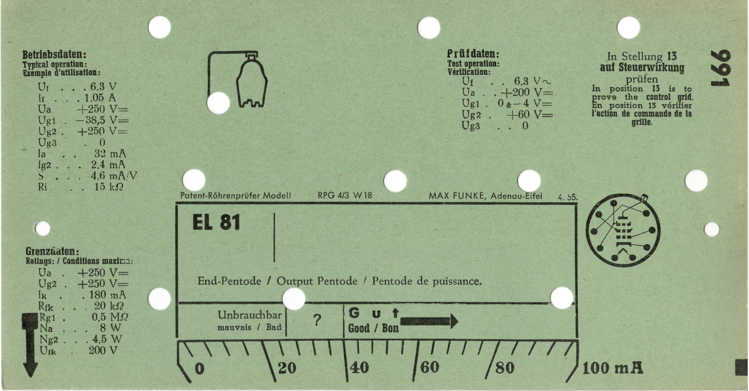 EL 81 | 991 | #1: Funke-Prüfkartenverzeichnis vom 1.3.57 | Europa-Röhrentypen | |