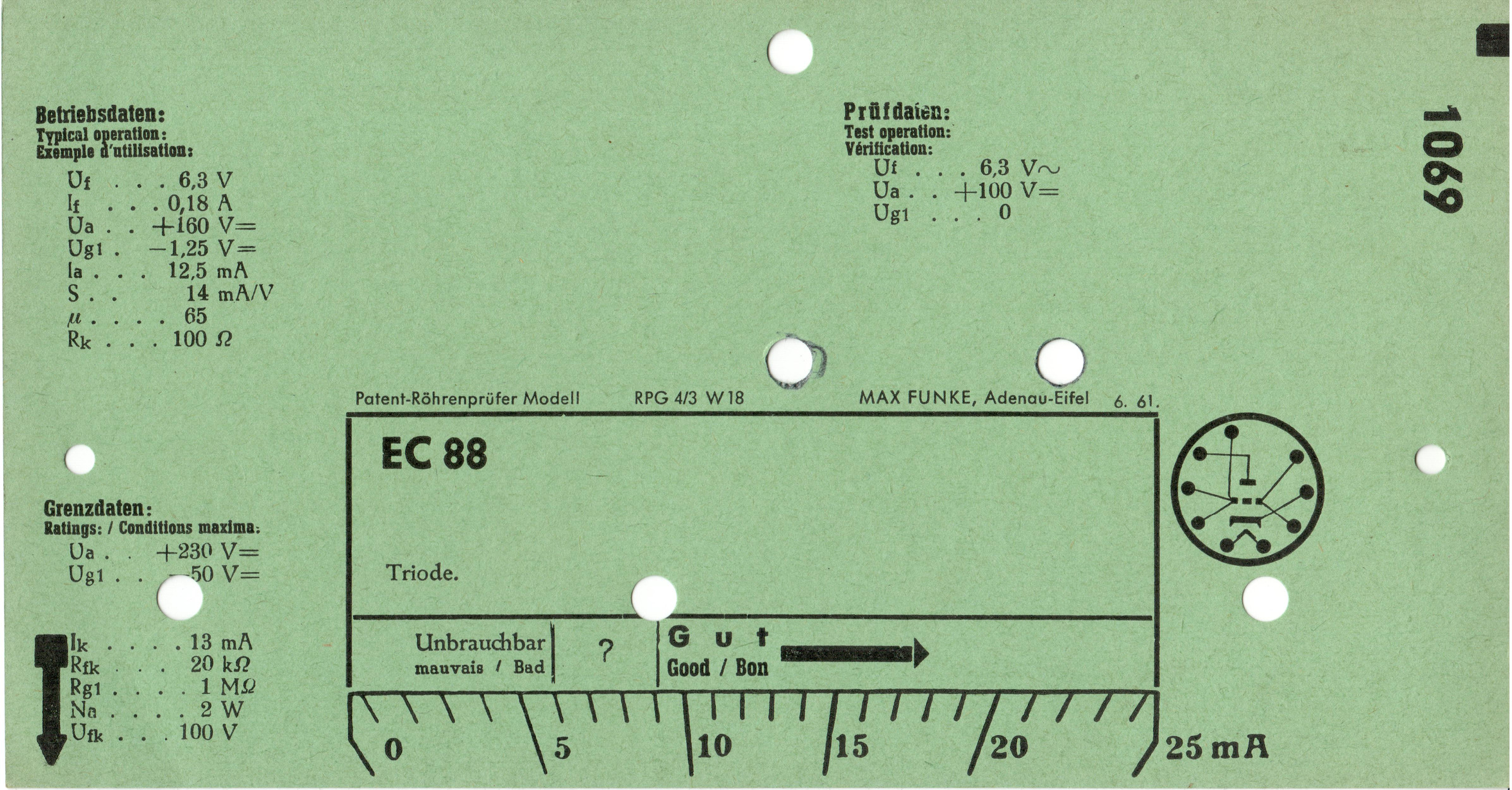6 DL 4 | 1069 | #6: Röhren- und Prüfkarten-Verzeichnis zum Patent-Röhrenmeßgerät „Blaues Buch“ | Amerika | |