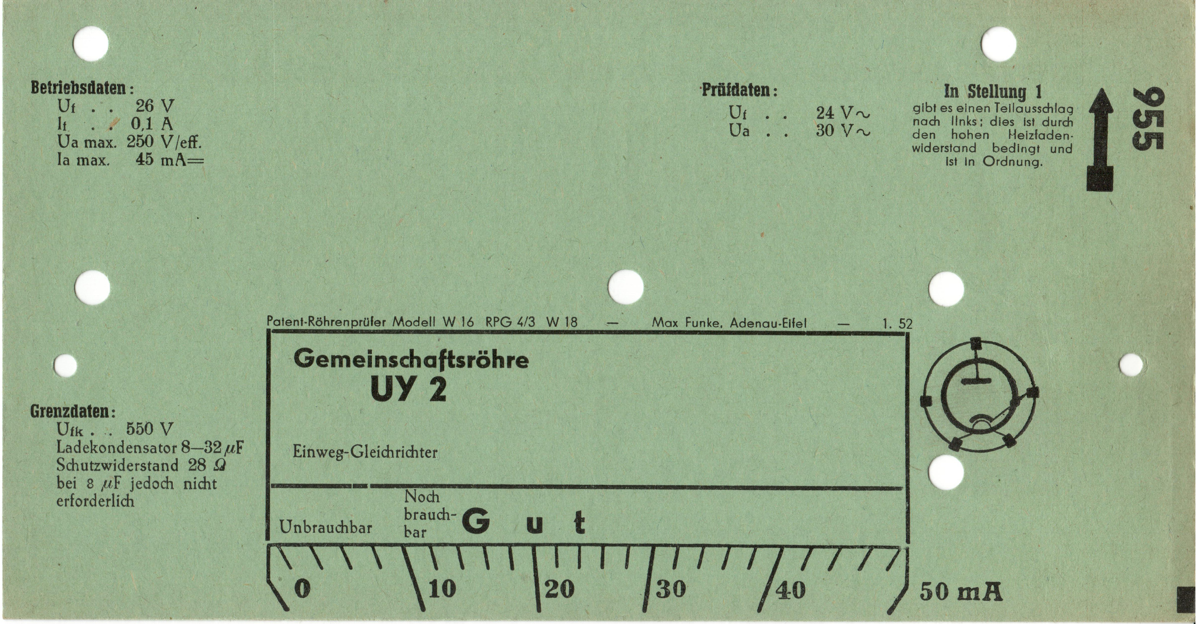 UY 2 | 955 | #1: Funke-Prüfkartenverzeichnis vom 1.3.57 | Europa-Röhrentypen |
