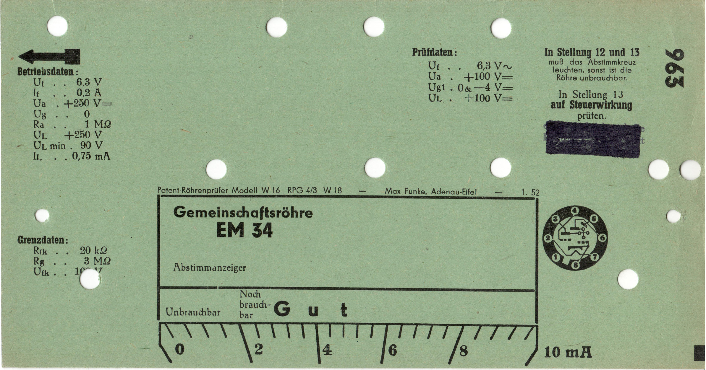 EM 34 | 963 | #1: Funke-Prüfkartenverzeichnis vom 1.3.57 | Europa-Röhrentypen | |