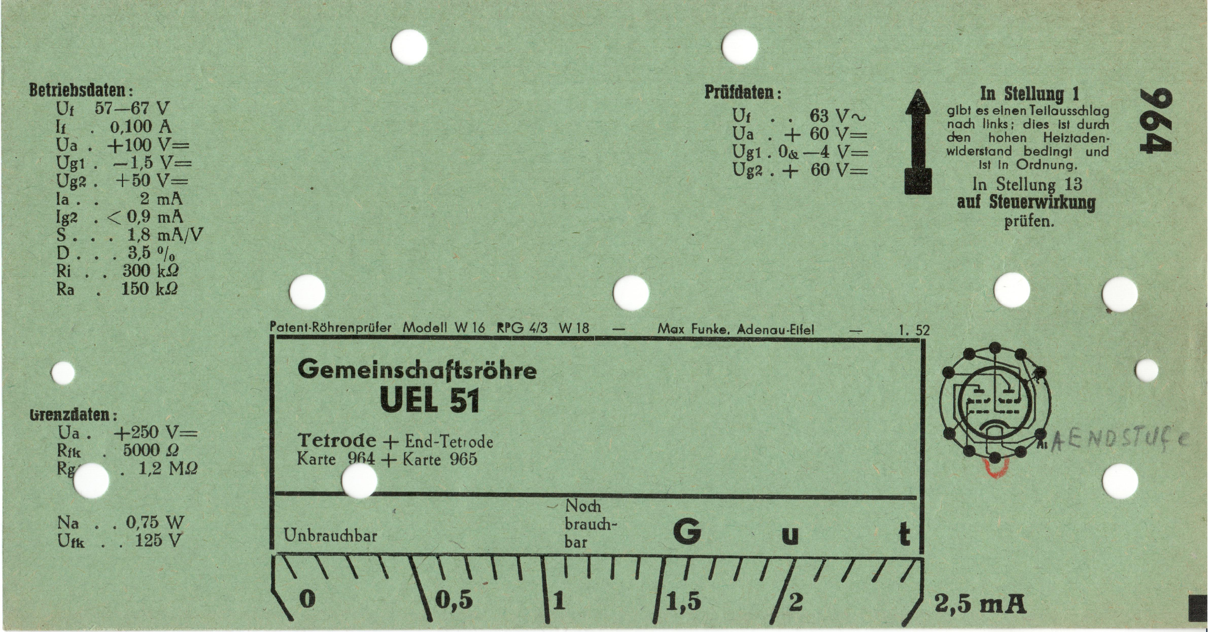 UEL 51 | 964 + 965 | #1: Funke-Prüfkartenverzeichnis vom 1.3.57 | Europa-Röhrentypen |
