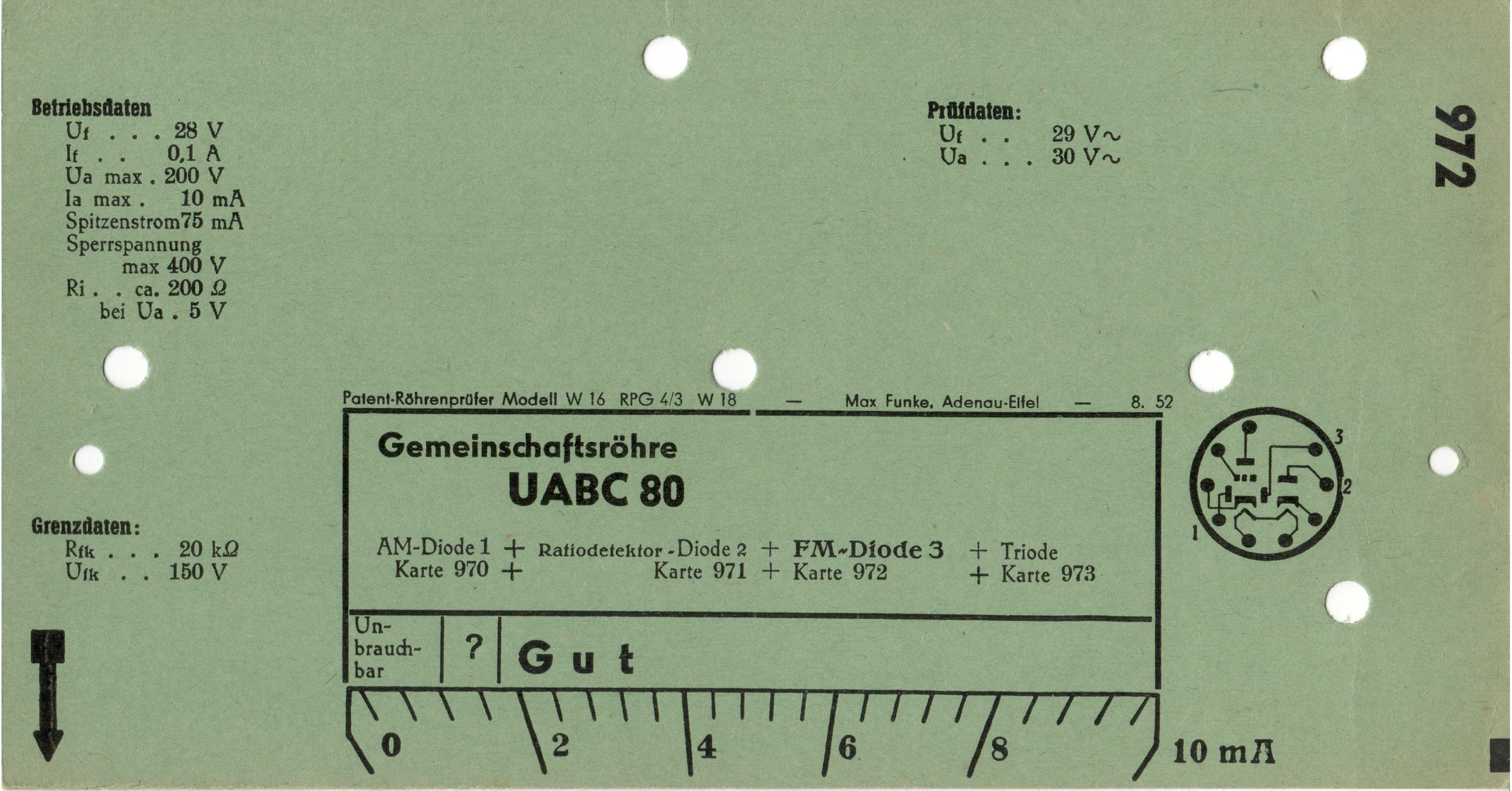 UABC 80 | 970 + 971 + 972 + 973 | #1: Funke-Prüfkartenverzeichnis vom 1.3.57 | Europa-Röhrentypen | |