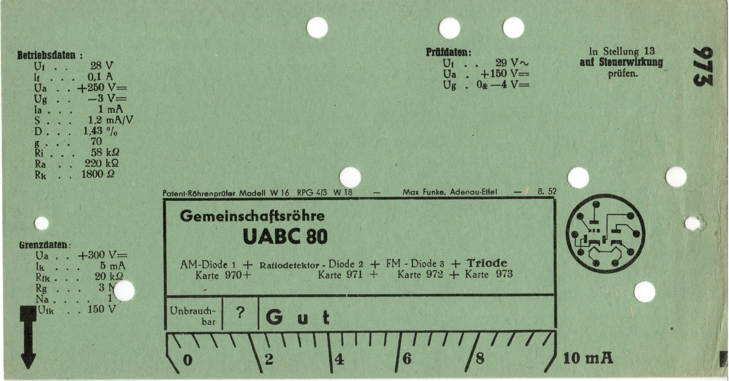UABC 80 | 970 + 971 + 972 + 973 | #1: Funke-Prüfkartenverzeichnis vom 1.3.57 | Europa-Röhrentypen | |