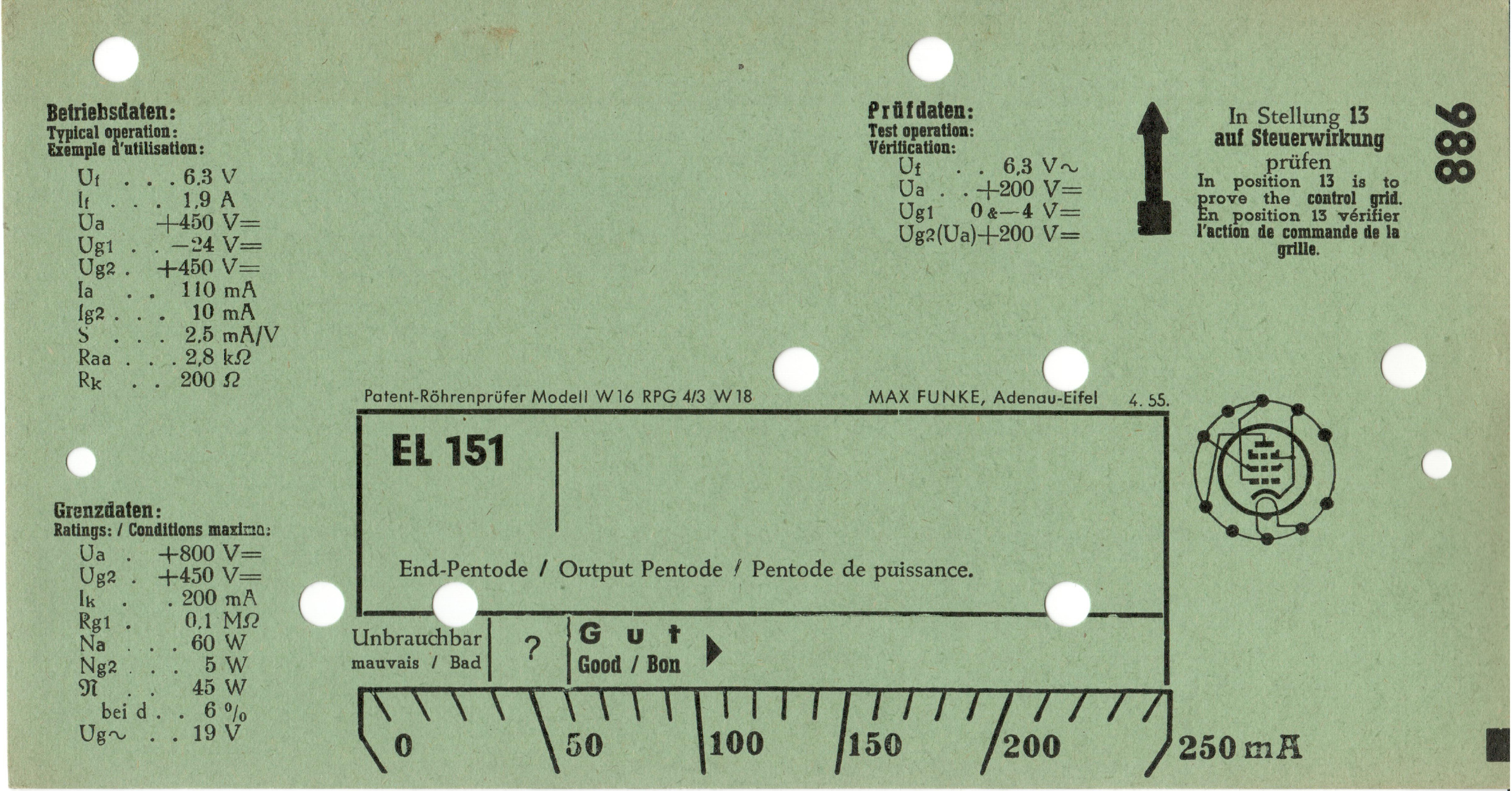 EL 151 | 988 | #1: Funke-Prüfkartenverzeichnis vom 1.3.57 | Europa-Röhrentypen |