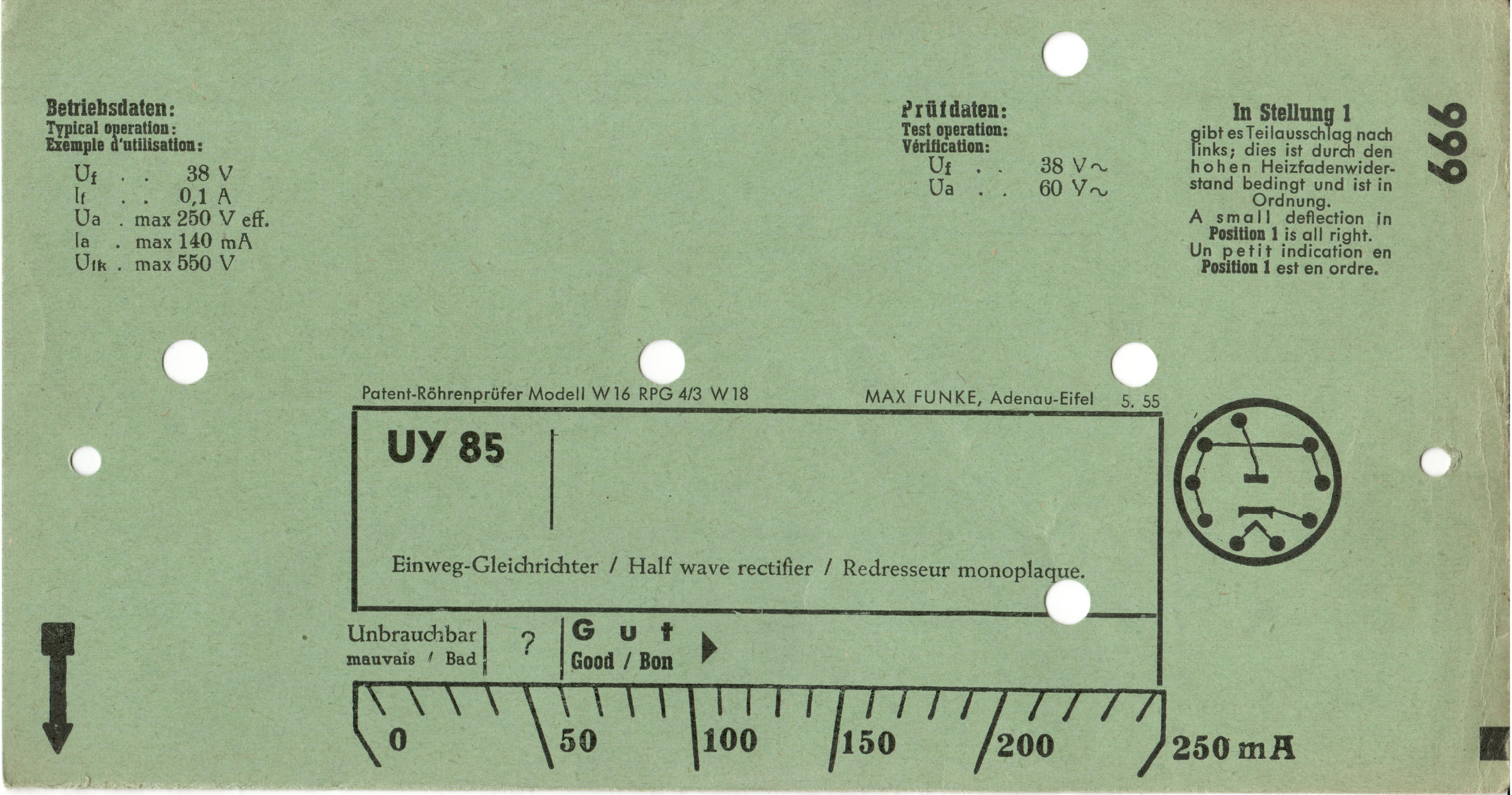 UY 85 | 999 | #1: Funke-Prüfkartenverzeichnis vom 1.3.57 | Europa-Röhrentypen | |