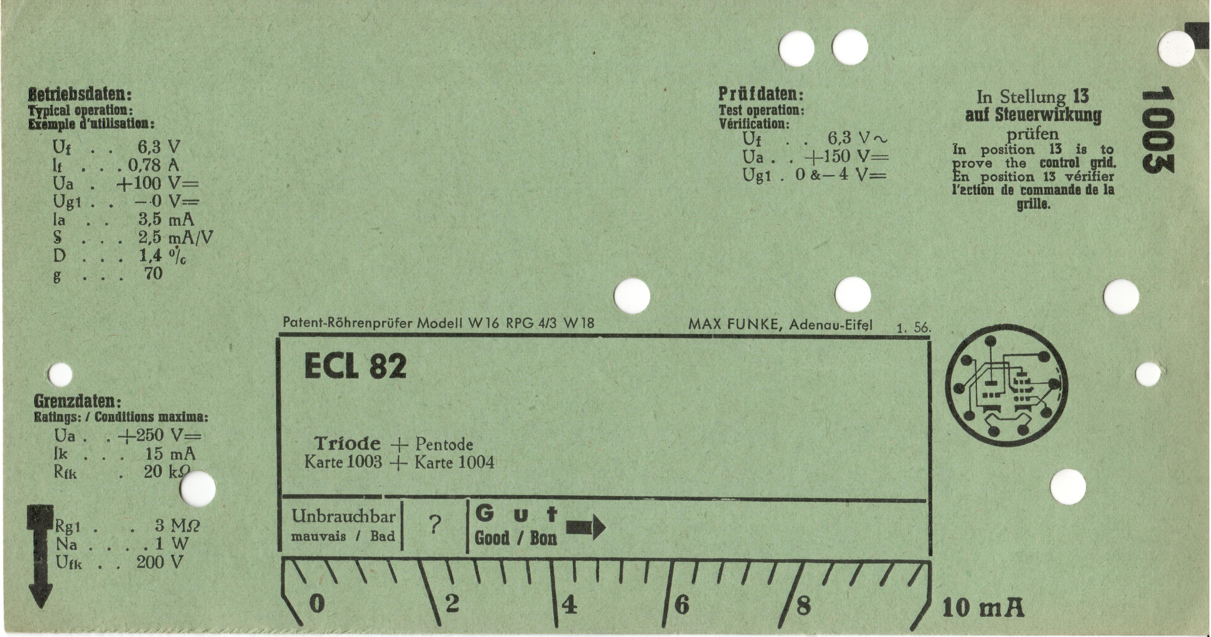 ECL 82 | 1003 + 1004 | #1: Funke-Prüfkartenverzeichnis vom 1.3.57 | Europa-Röhrentypen | |
