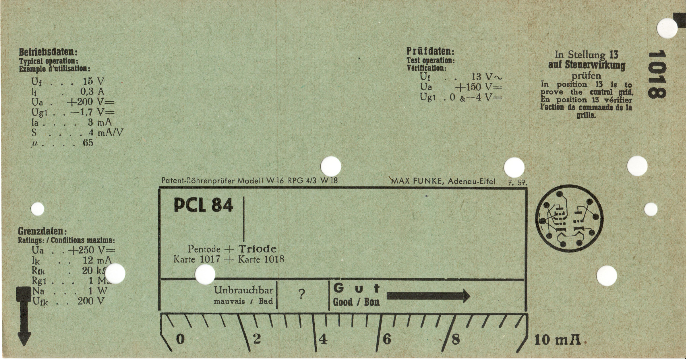 PCL 84 | 1017 + 1018 | #1: Funke-Prüfkartenverzeichnis vom 1.3.57 | Europa-Röhrentypen | |