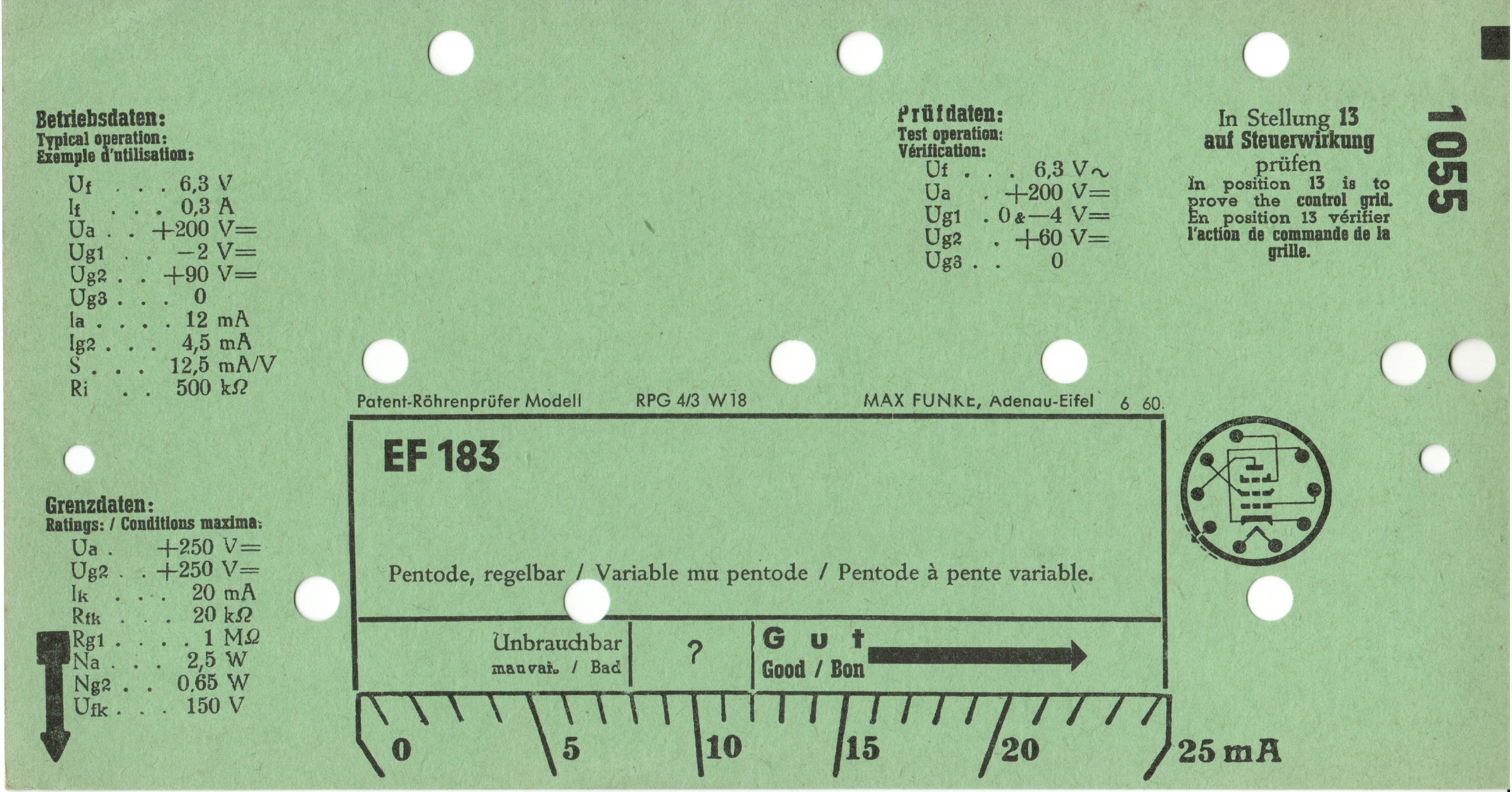 6 EH 7 | 1055 | #6: Röhren- und Prüfkarten-Verzeichnis zum Patent-Röhrenmeßgerät „Blaues Buch“ | Amerika |