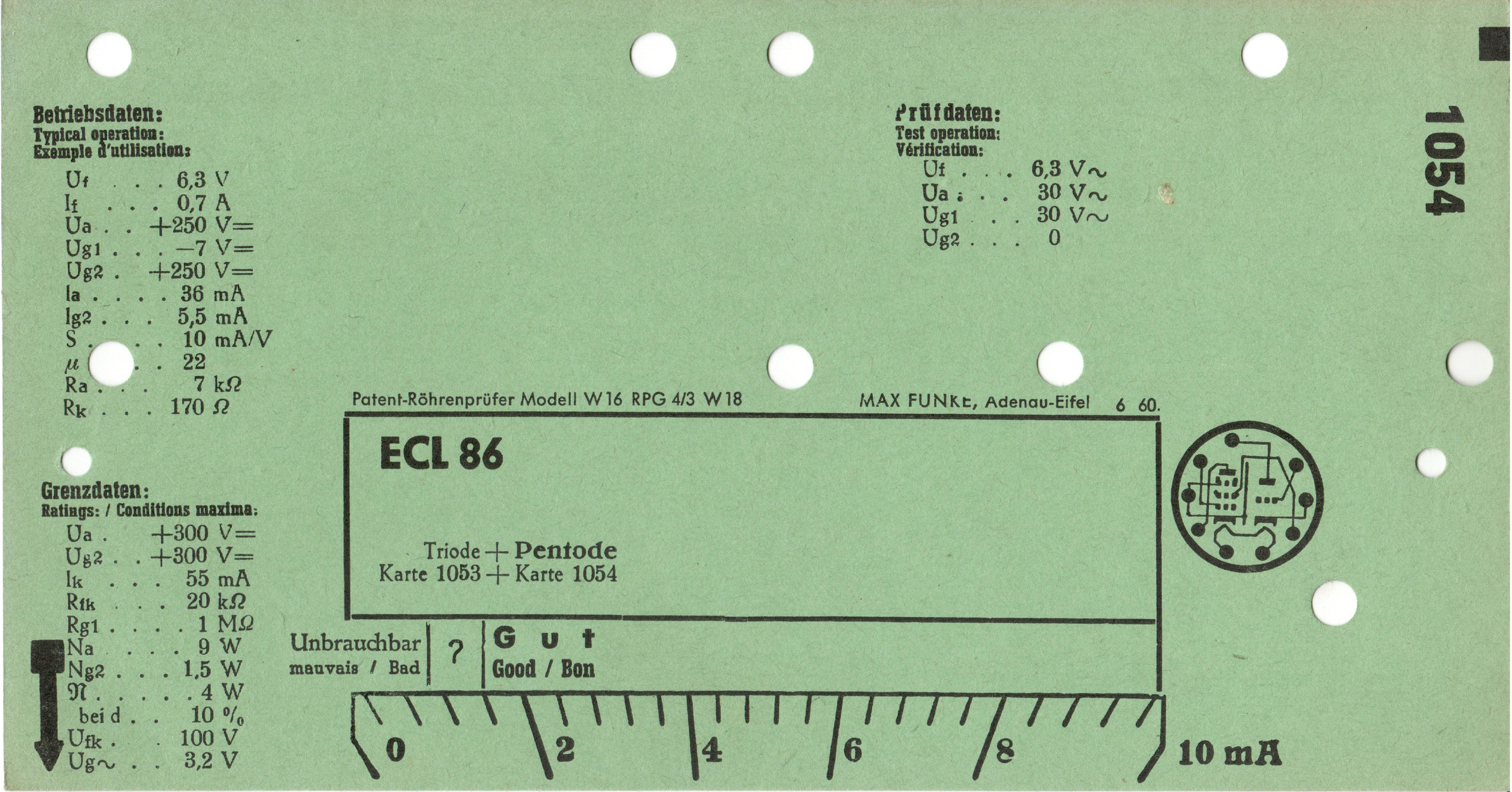 6 GW 8 | 1053 + 1054 | #6: Röhren- und Prüfkarten-Verzeichnis zum Patent-Röhrenmeßgerät „Blaues Buch“ | Amerika |