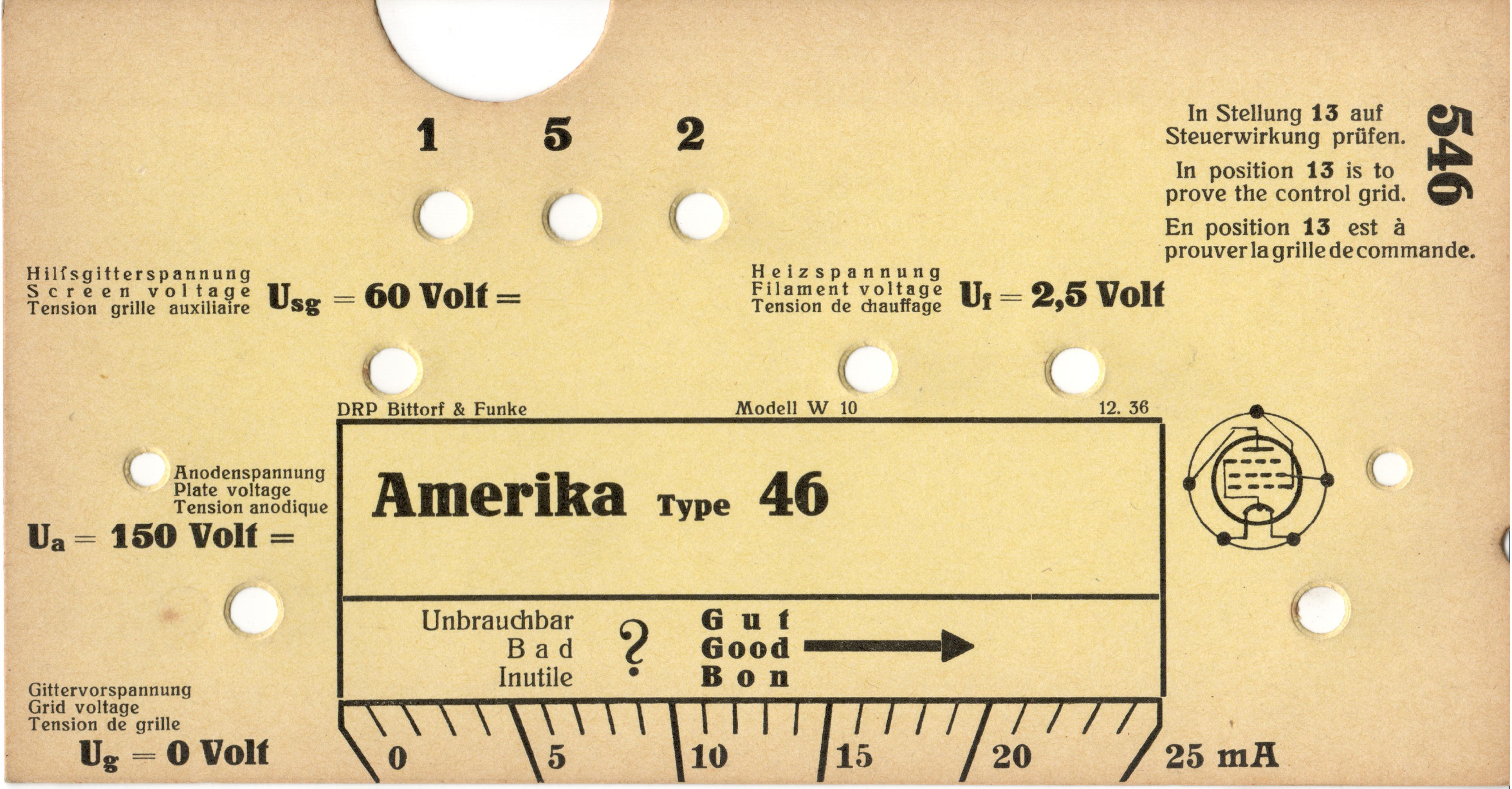 46 | 546 | #1: Funke-Prüfkartenverzeichnis vom 1.3.57 | Amerika-Röhrentypen | |