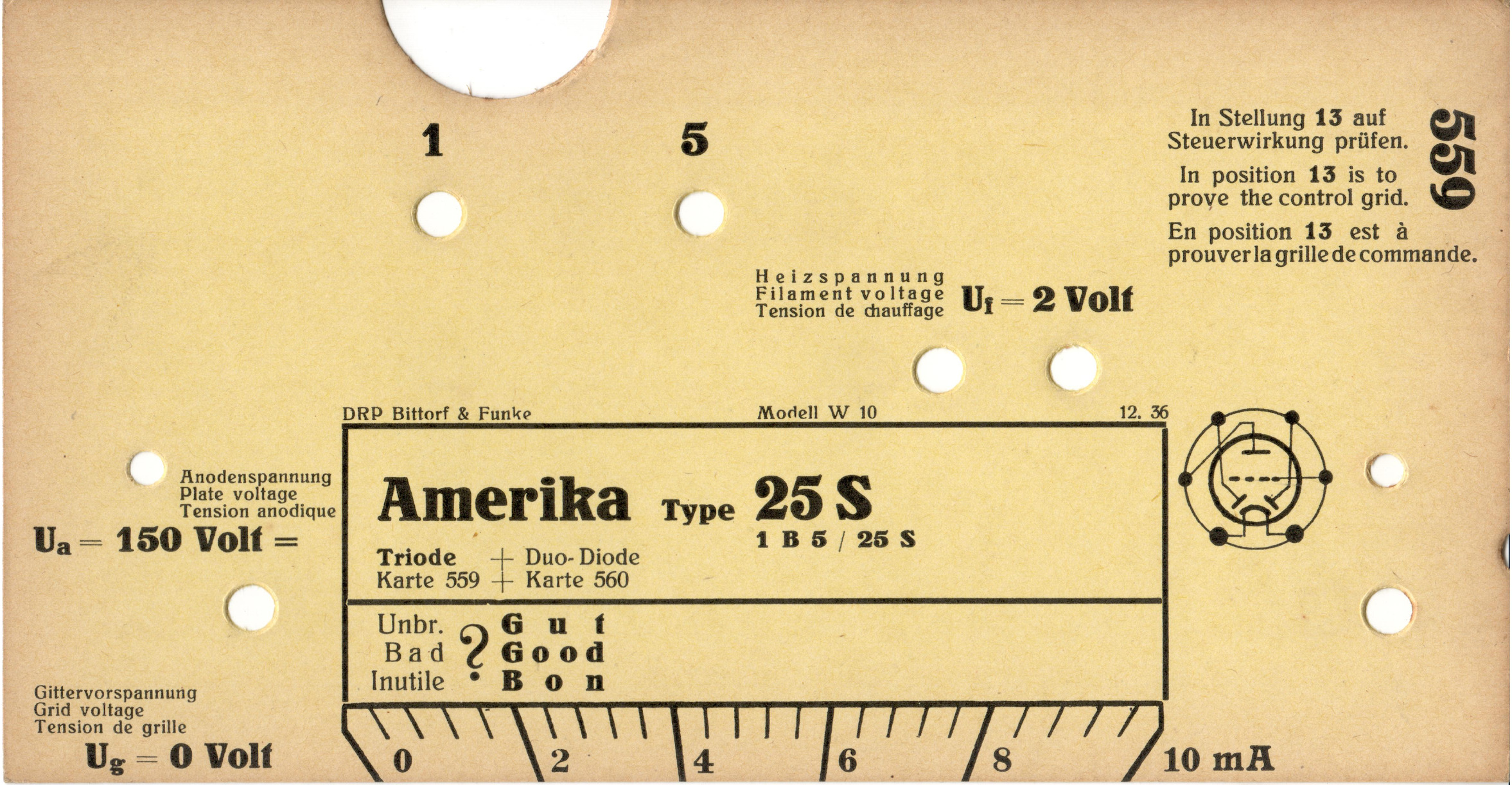 25 25 S | 559 + 560 | #1: Funke-Prüfkartenverzeichnis vom 1.3.57 | Amerika-Röhrentypen | |