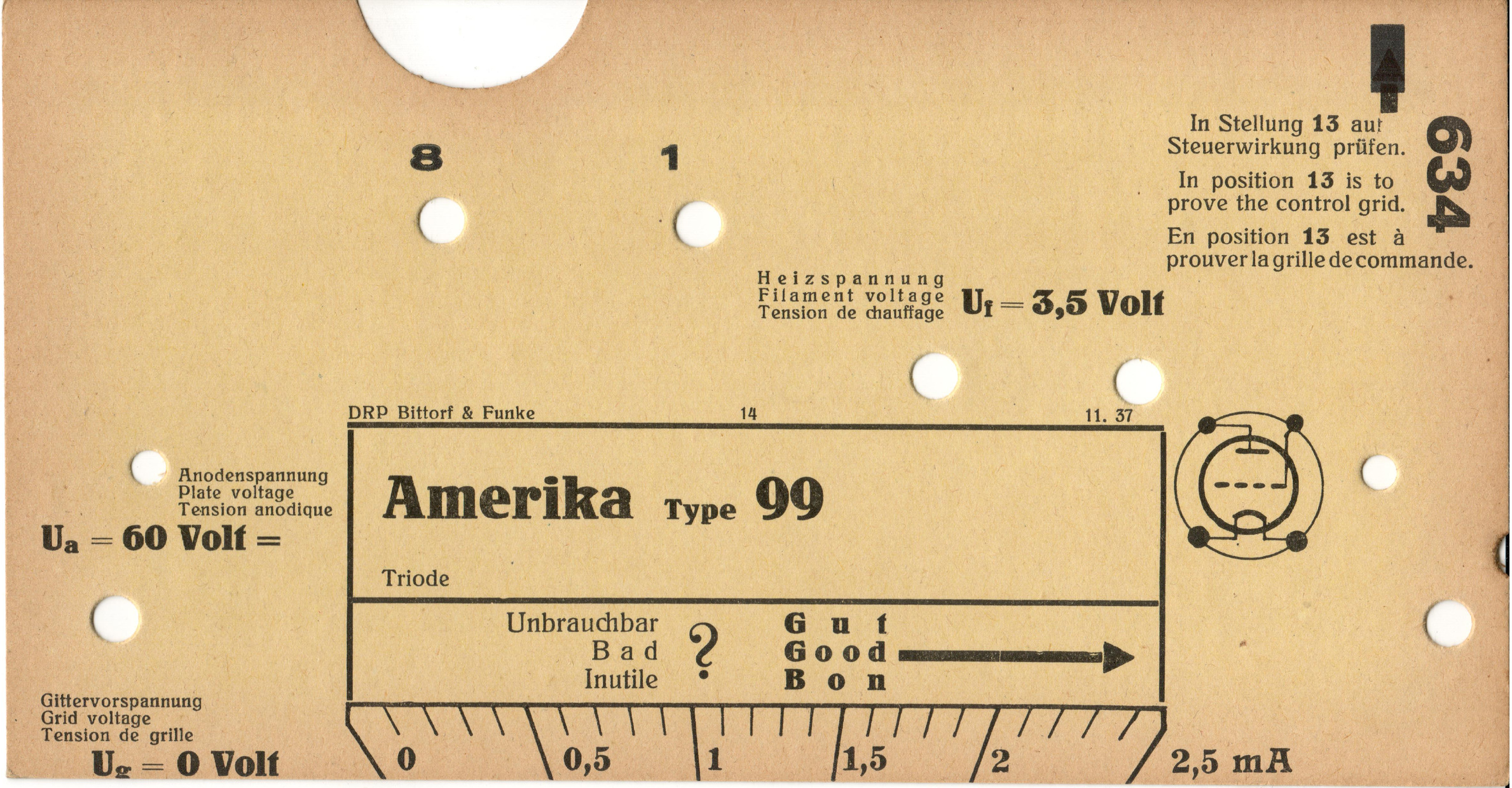 Funke verweist im Blauen Buch für die Prüfung von „UV199, V99 und 99 auf diese Karte hin, was jedoch fehlerhaft ist. Die Anodenspannung wird auf die Heizung gelegt, was diese sofort zerstört. Die vorgenannten Röhren sind auf W19(S) nicht prüfbar.“ (Zitat von funkew19.de)