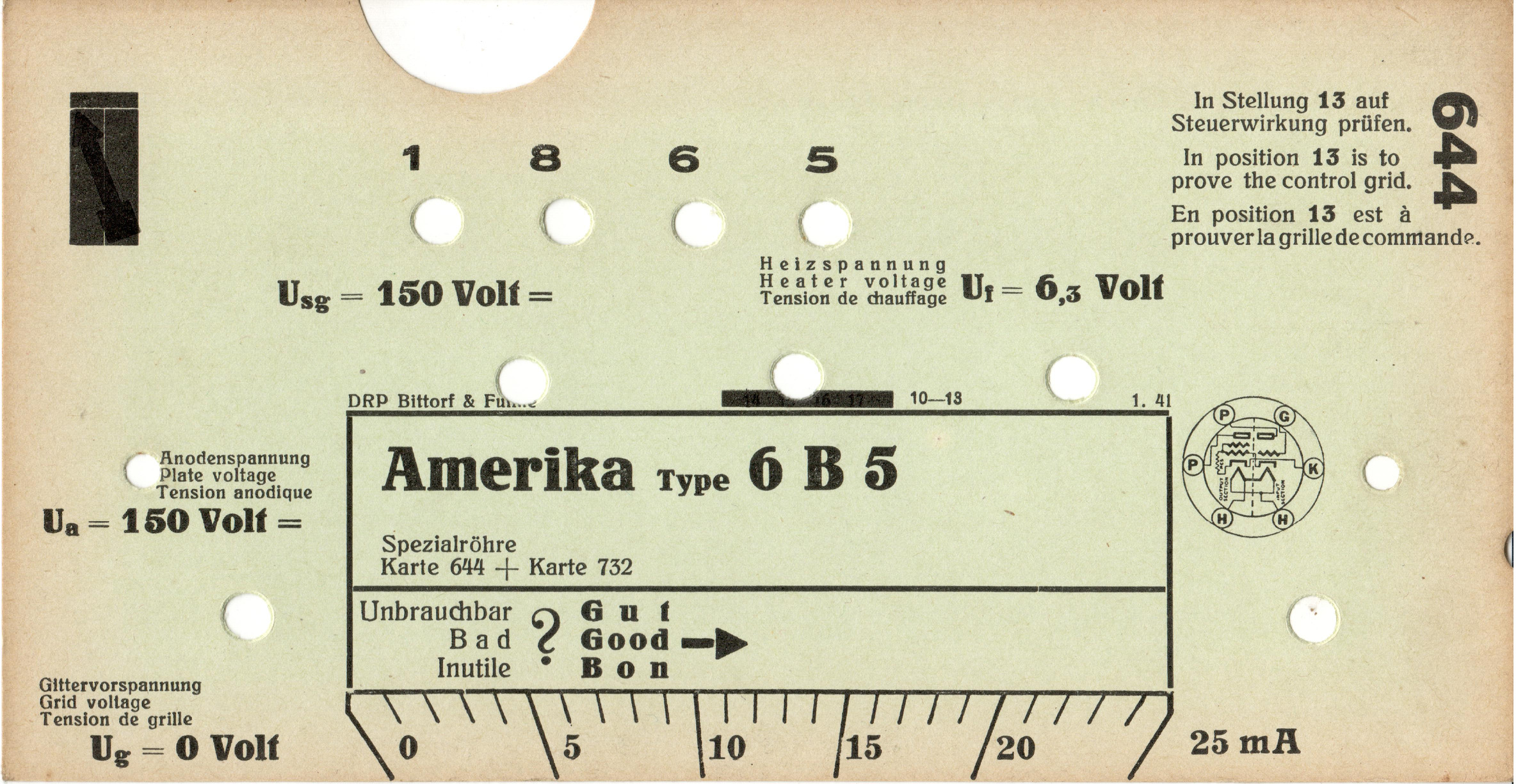 UCC 85 | 556 + 644 | #1: Funke-Prüfkartenverzeichnis vom 1.3.57 | Europa-Röhrentypen | |