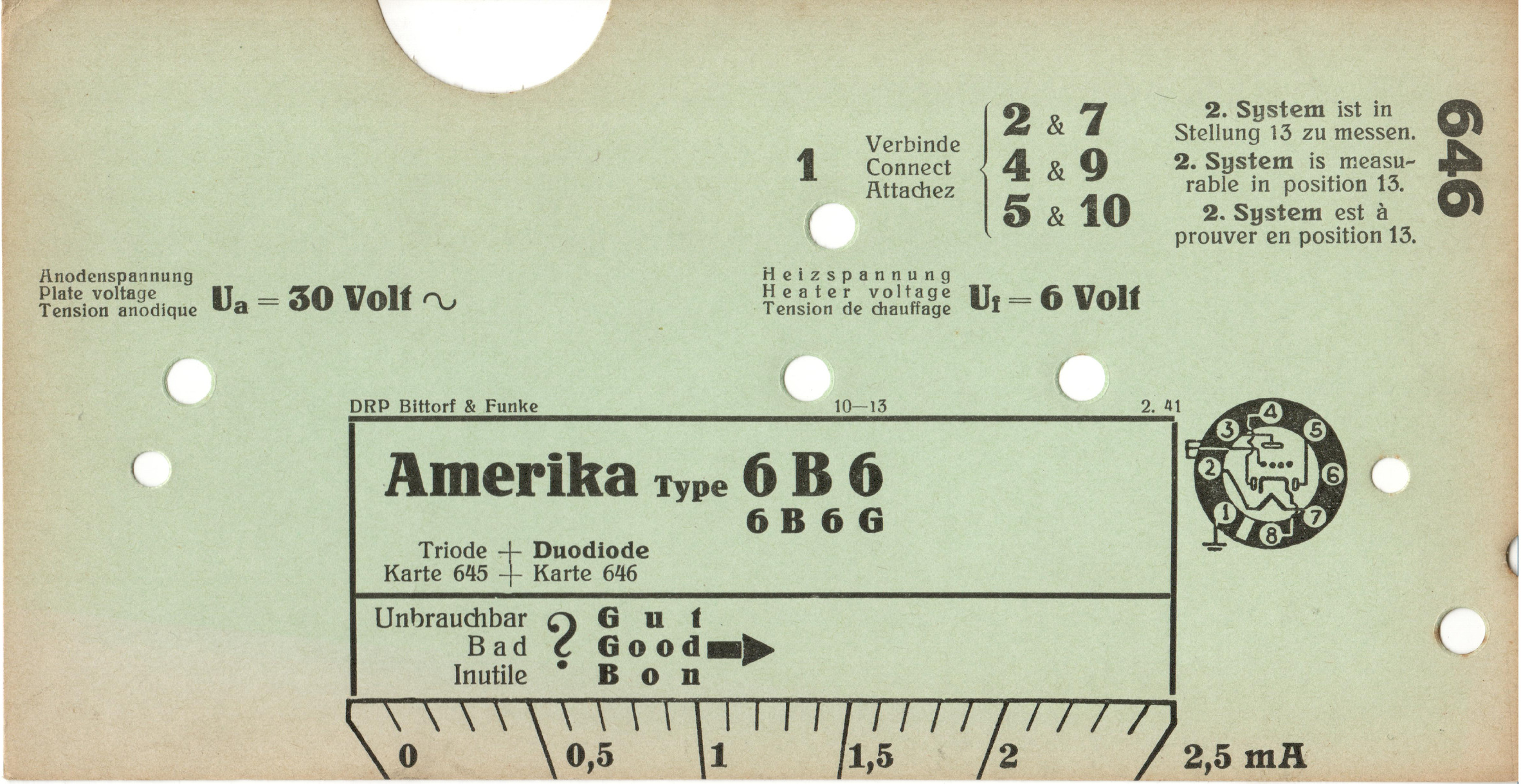 EM 71 | 646 | #1: Funke-Prüfkartenverzeichnis vom 1.3.57 | Europa-Röhrentypen | |