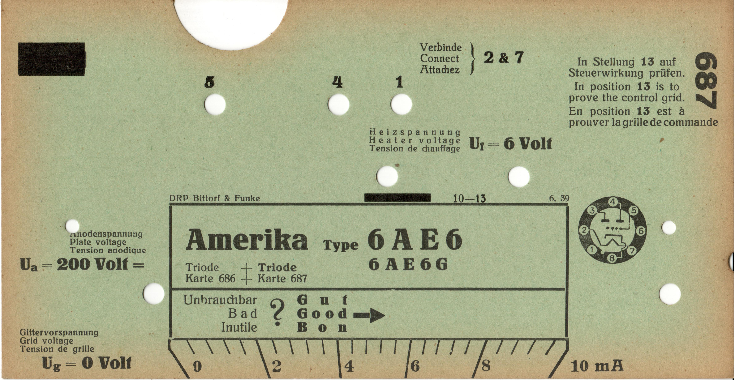 6 AE 6 | 686 + 687 | #1: Funke-Prüfkartenverzeichnis vom 1.3.57 | Amerika-Röhrentypen |
