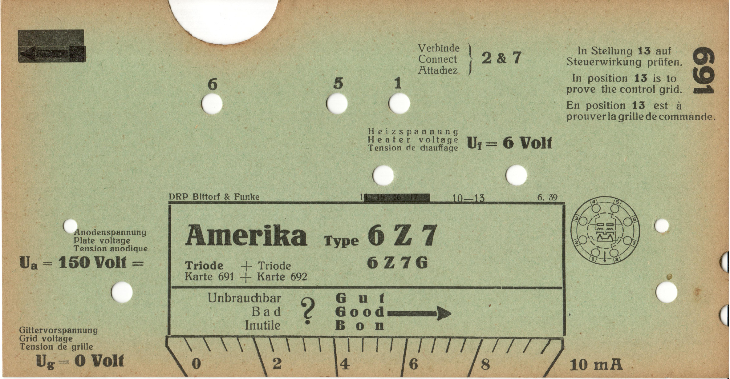 6 Z 7 | 667 + 691 | #1: Funke-Prüfkartenverzeichnis vom 1.3.57 | Amerika-Röhrentypen | |