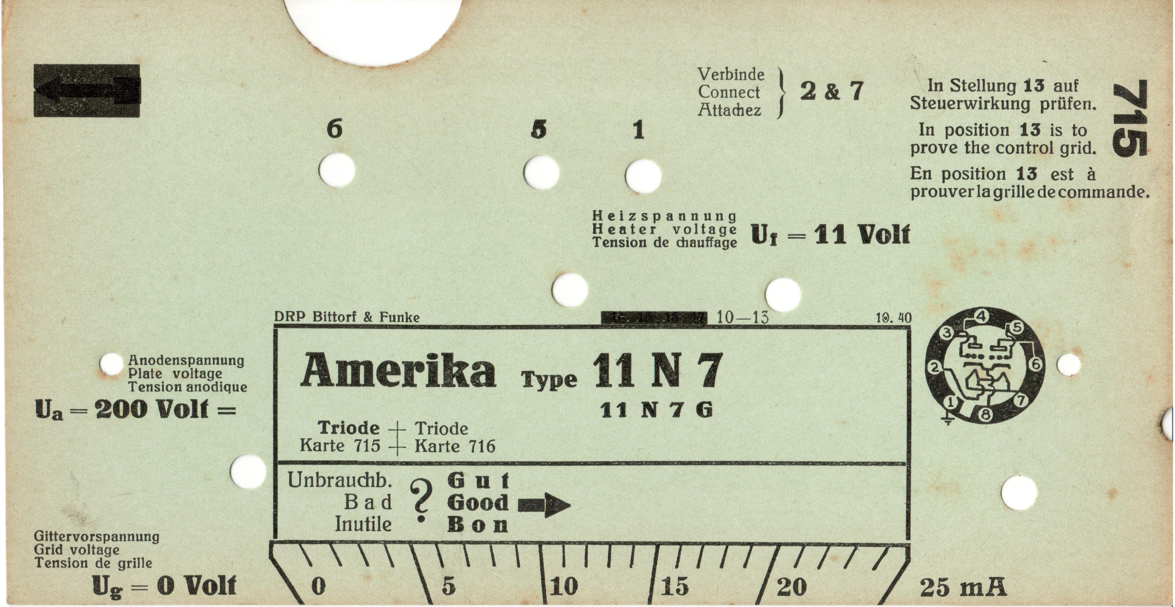 21 A 6 | 715 | #1: Funke-Prüfkartenverzeichnis vom 1.3.57 | Amerika-Röhrentypen | |