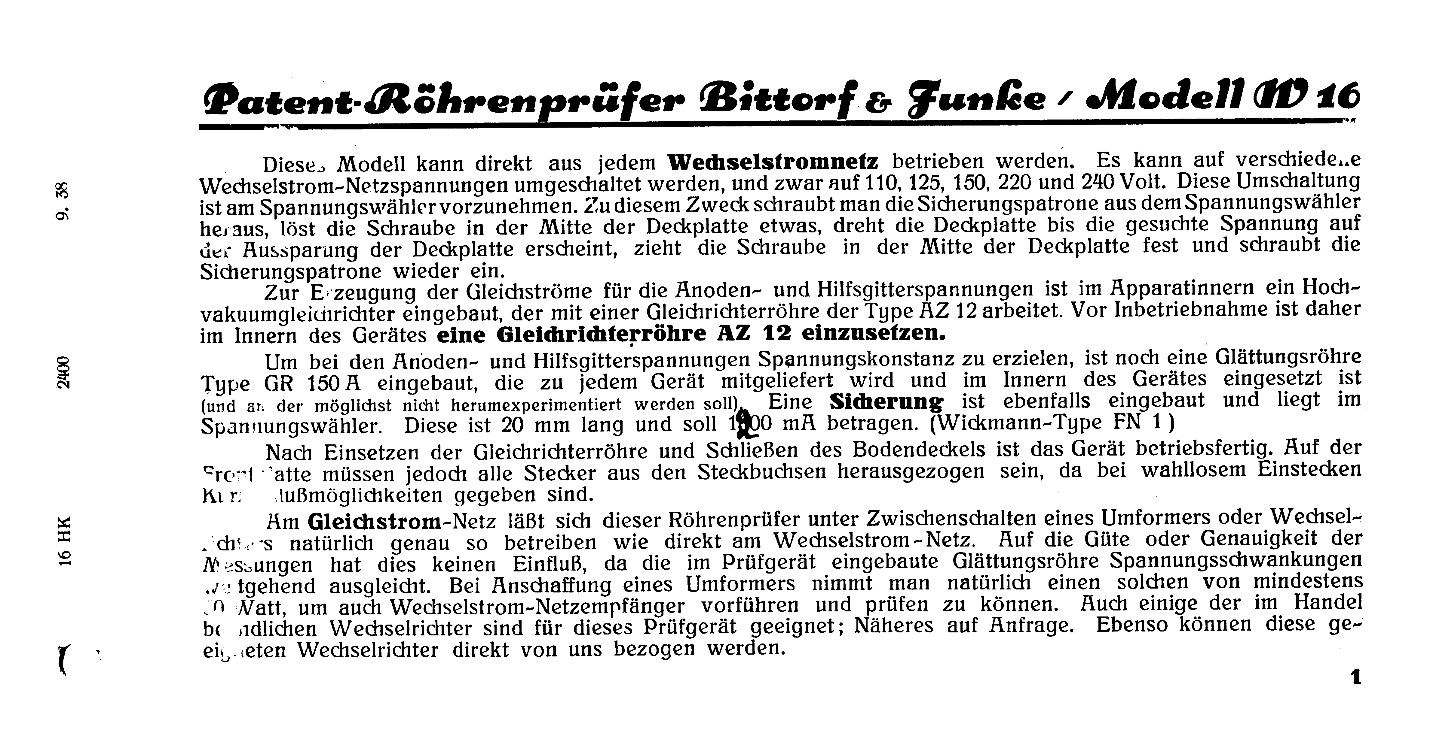 Patent-Röhrenprüfer Bittorf & Funke / Modell W 16