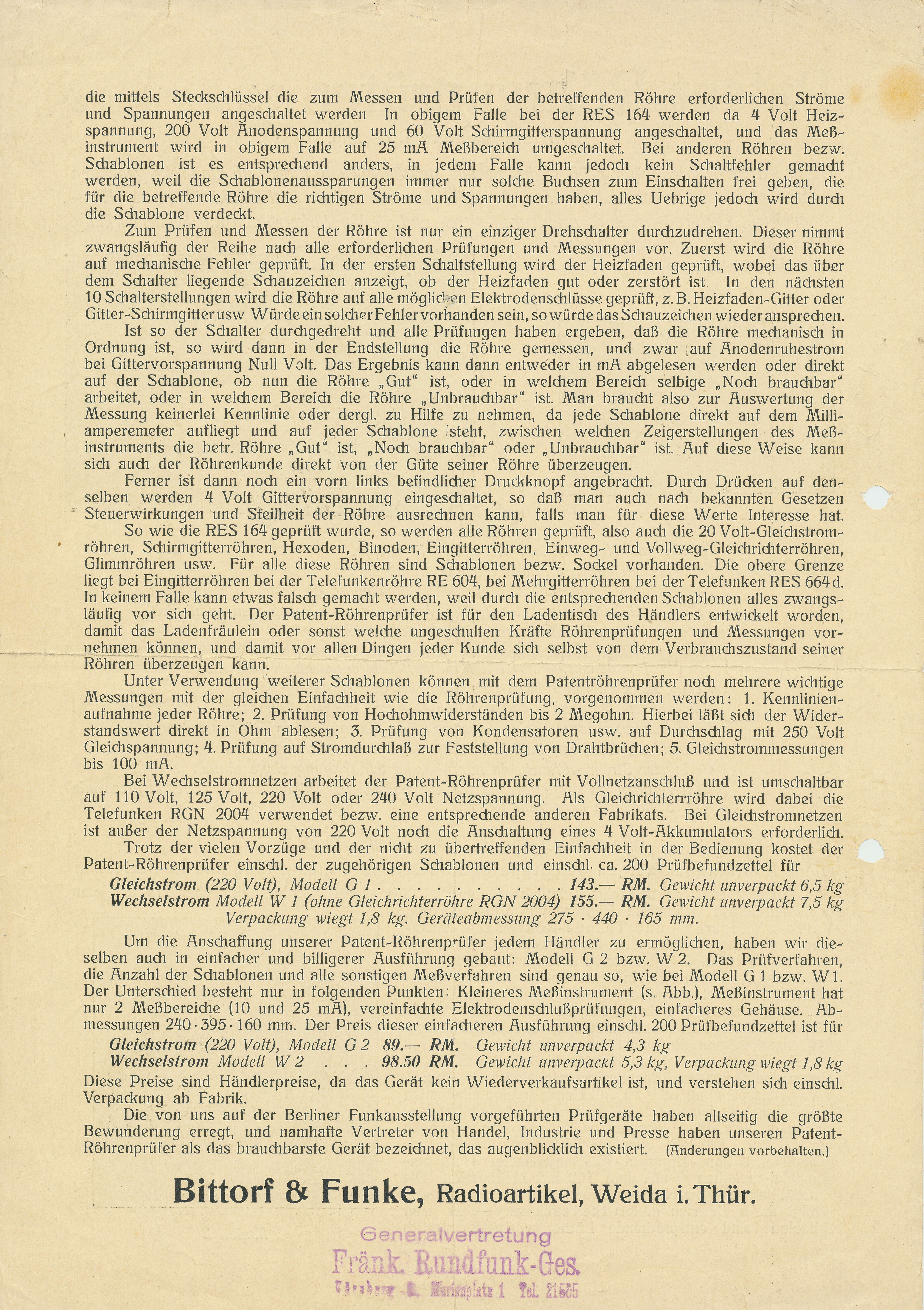 | Titel | Patent-Röhrenprüfer Bittorf & Funke |
