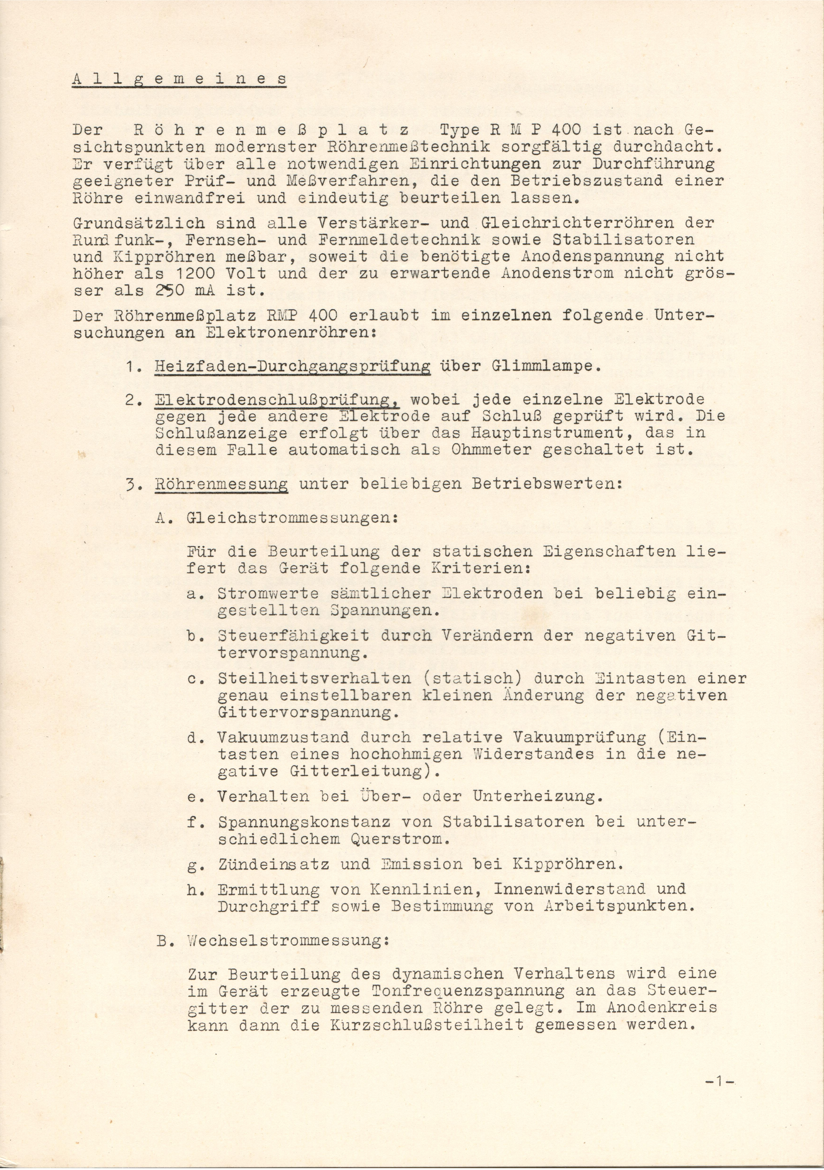 | Titel | Röhren-Meßplatz RMP 400: Bedienungsanweisung |