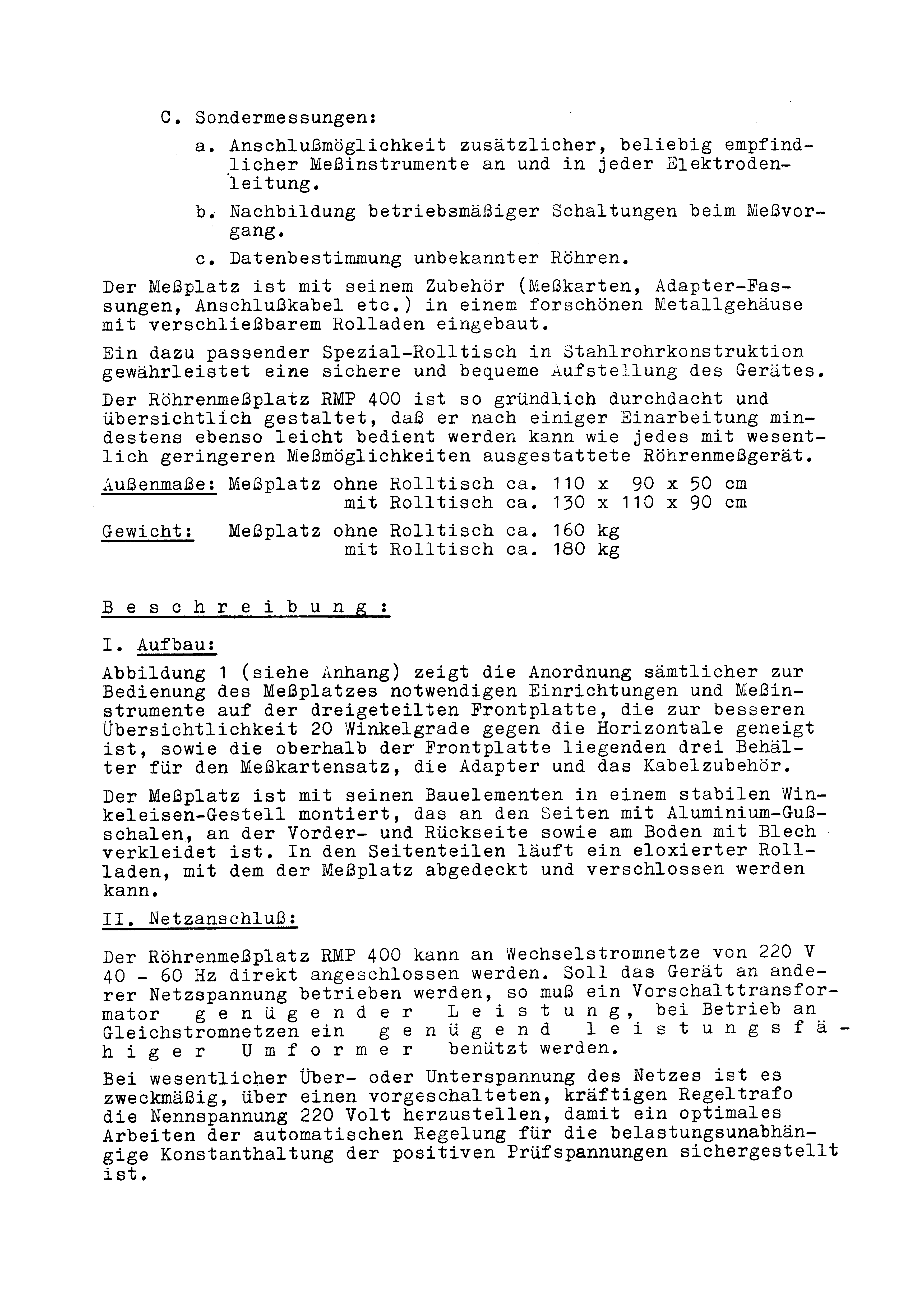 Röhren-Meßplatz RMP 400: Bedienungsanweisung