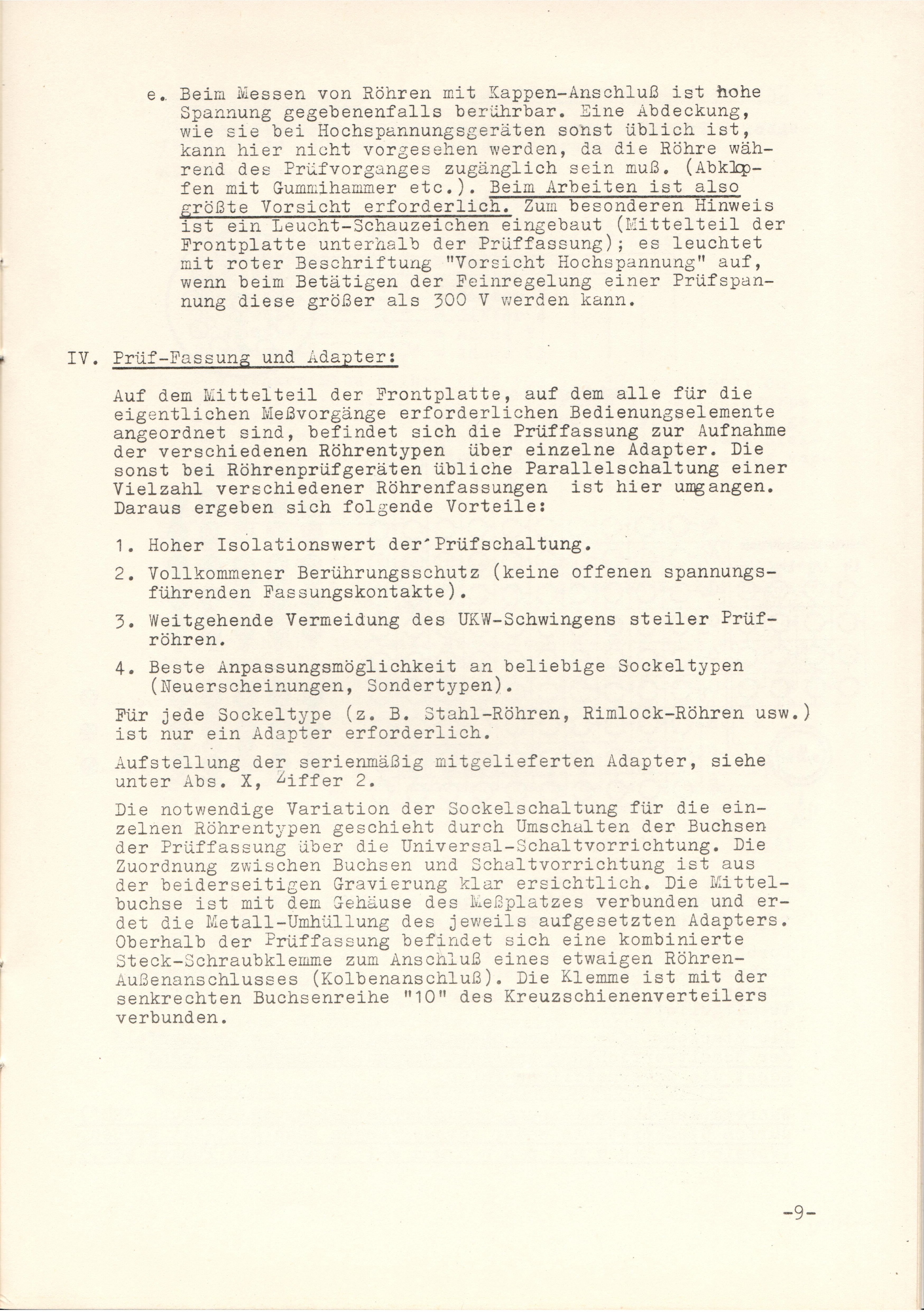 Röhren-Meßplatz RMP 400: Bedienungsanweisung