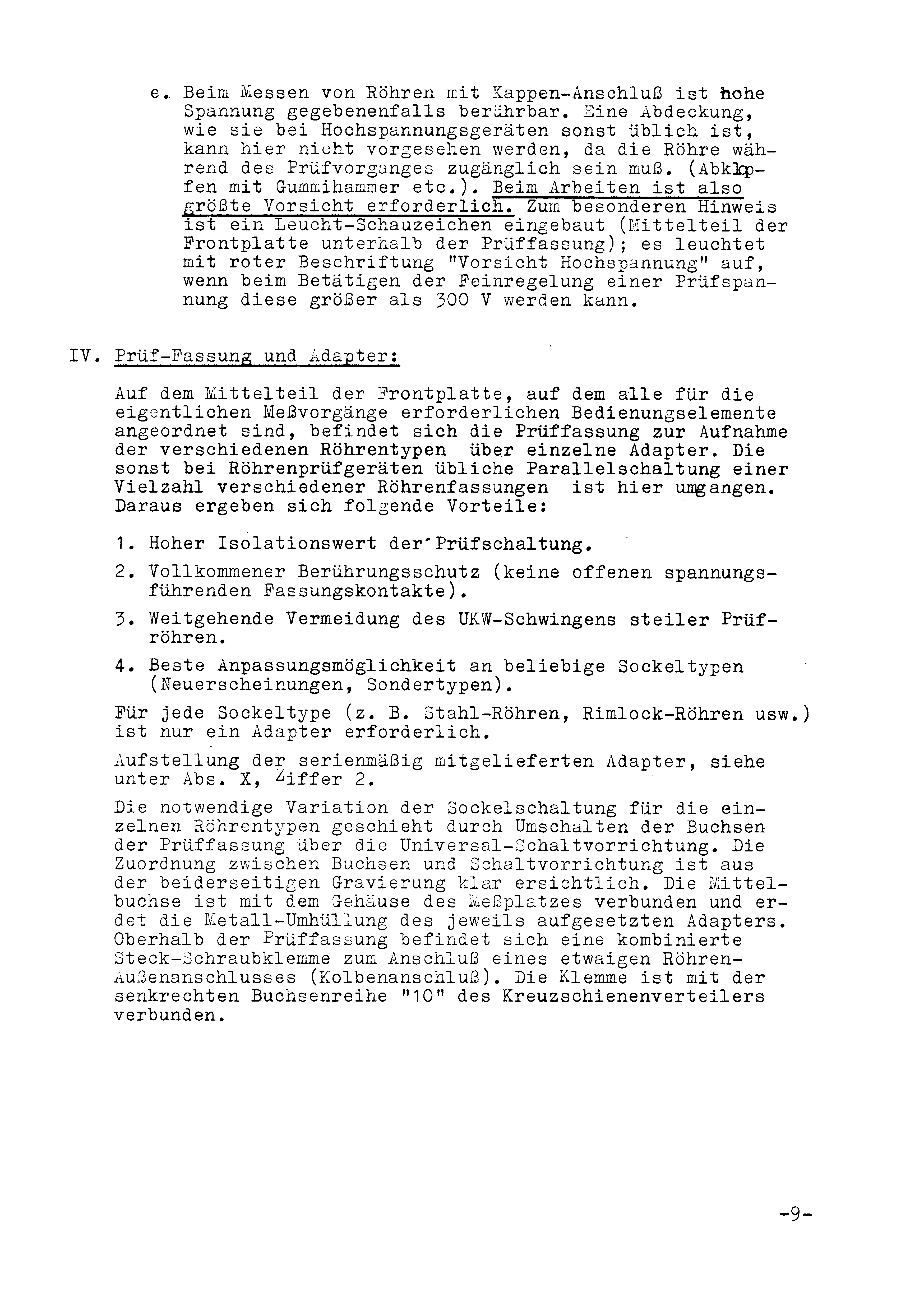 Röhren-Meßplatz RMP 400: Bedienungsanweisung